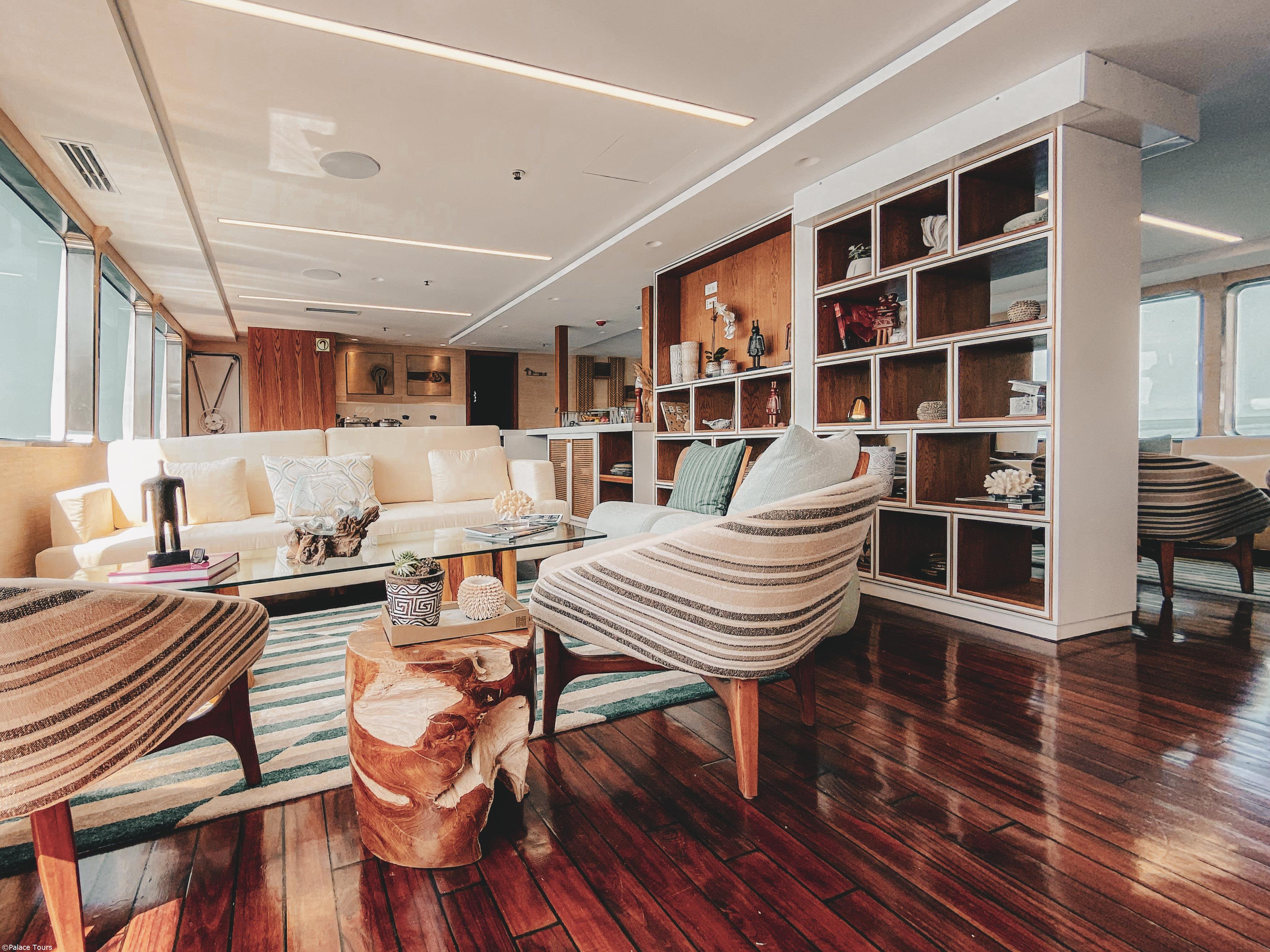 Smoking is prohibited in all indoor areas of the yacht. There is an outdoor designated area for smoking.