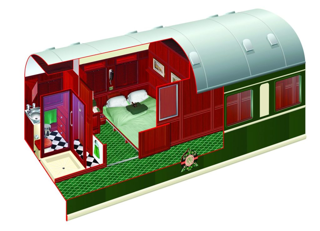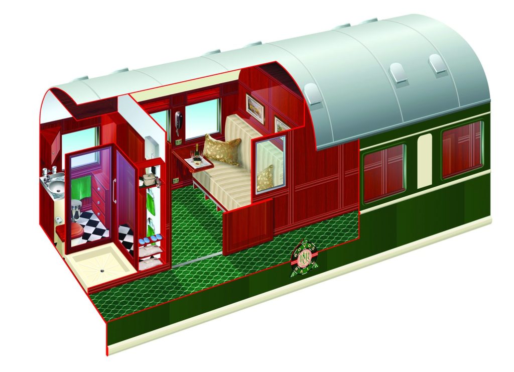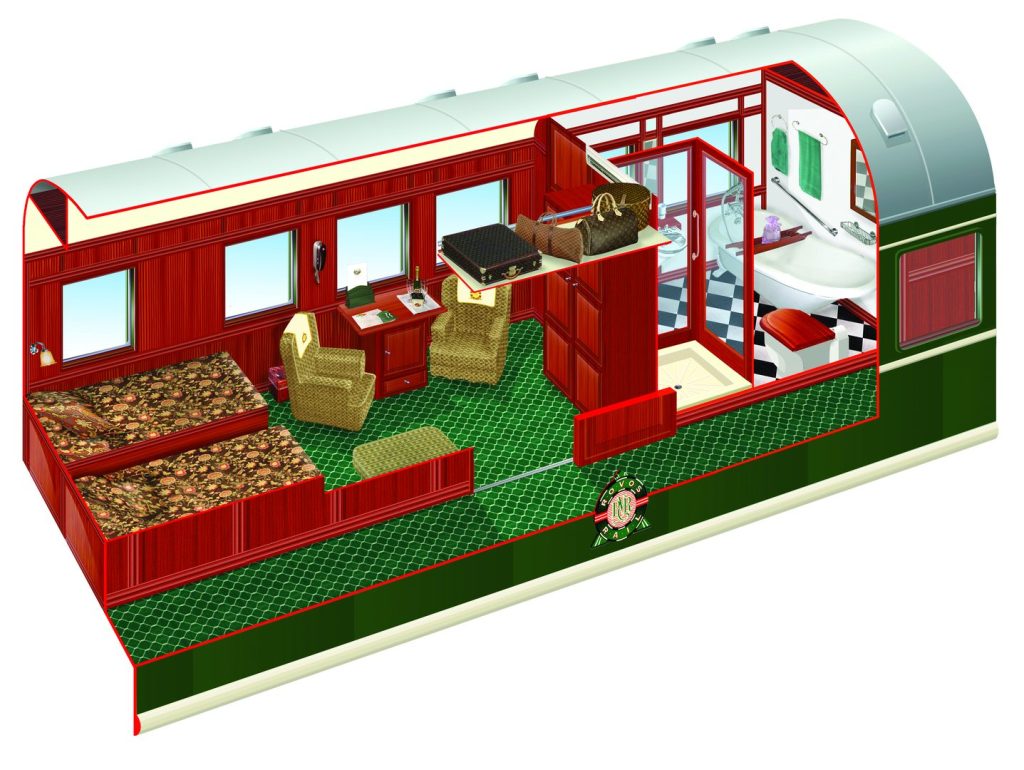 At approximately 16m² (172ft²), Royal Suites are the most spacious, each occupying half a carriage. They feature a private lounge area for relaxation.